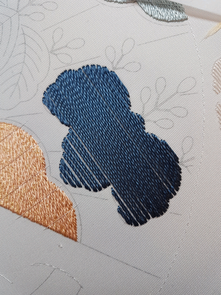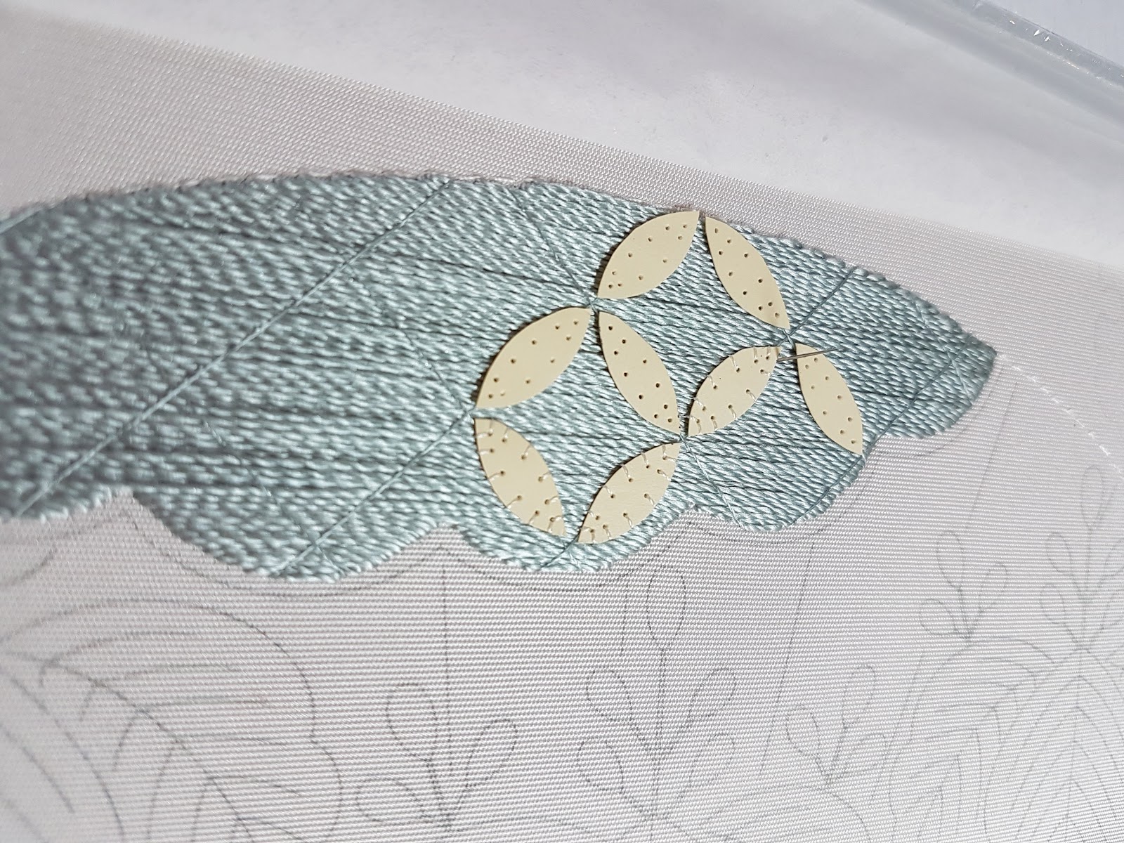 Last week I received a comment from someone who was a noreply-comment. Nicole M. asked: i noticed on your fabric the leaves have the veins drawn in. But when you are doing your stitches, they don't seem to be used for anything. It that right? Is there a reason that those type of details are on your ground fabric when you don't seem to be using them for anything?